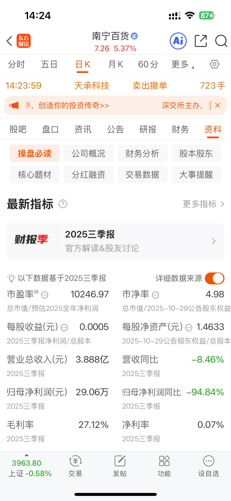 $合百集团(SZ000417)$  合百是板块最烂的票,被套了只能等了