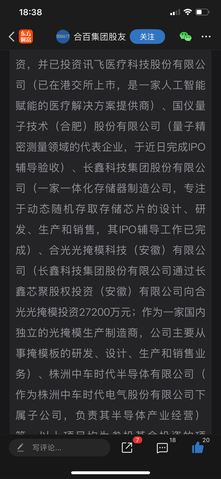 $合百集团(SZ000417)$ 胖改商超,免税店,冷链物流,电商,农产品,子公司投资电池回收等加下图投资的一蓝子,大家算一下要涨到多少才合适,一个赞一个涨停