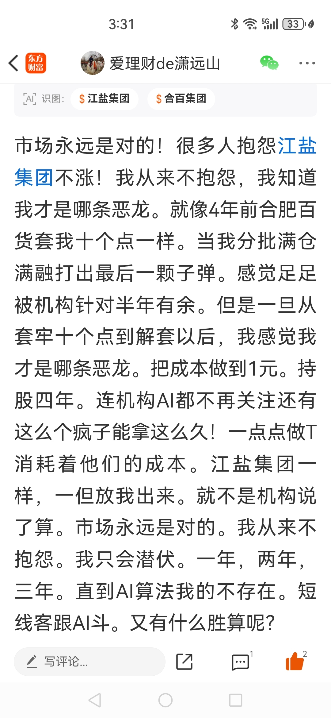 温馨提示: 1.根据《证券法》规定,禁止编造、传播虚假信息或者误导性信息,扰乱证券市场;2.用户在本社区发表的所有资料、言论等仅代表个人观点,与本网站立场无关,不对您构成任何投资建议。用户应基于自己的独立判断,自行决定证券投资并承担相应风险。《东方财富社区管理规定》