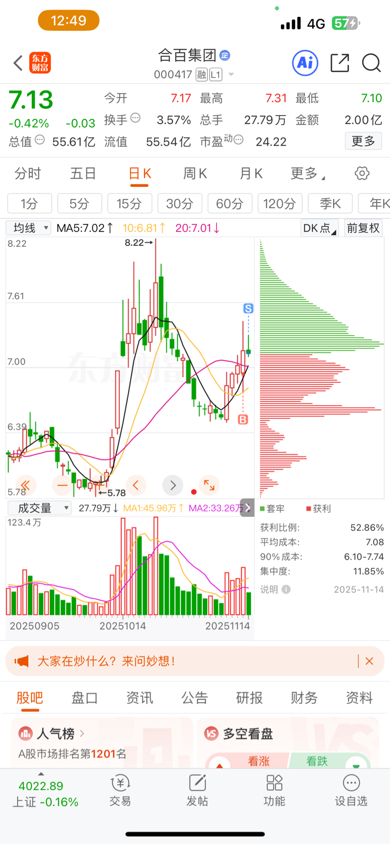 $合百集团(SZ000417)$ 吃到就跑,没格局的不加仓