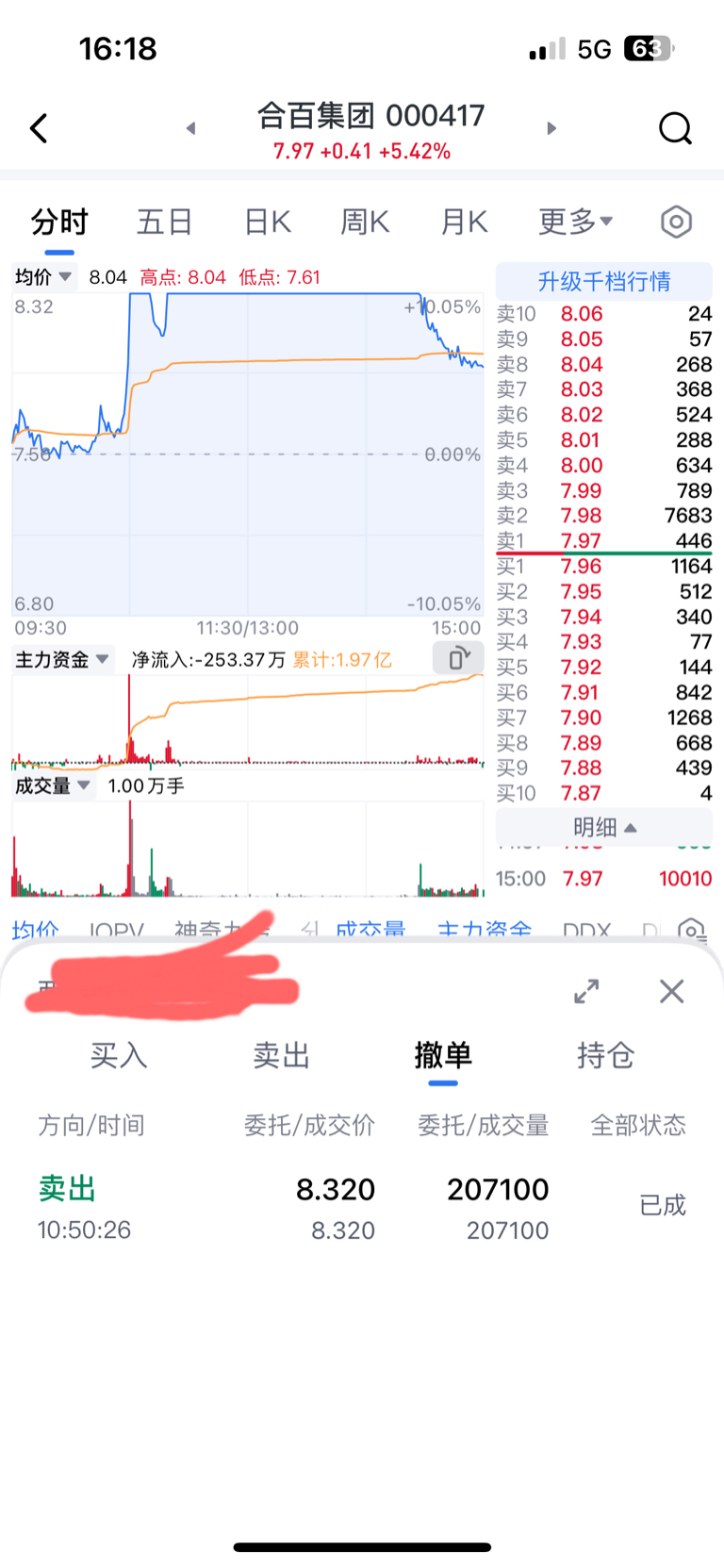 $合百集团(SZ000417)$ 幸好选择清仓走人。要不又得后悔少挣几万。等回调到7元在进。哈