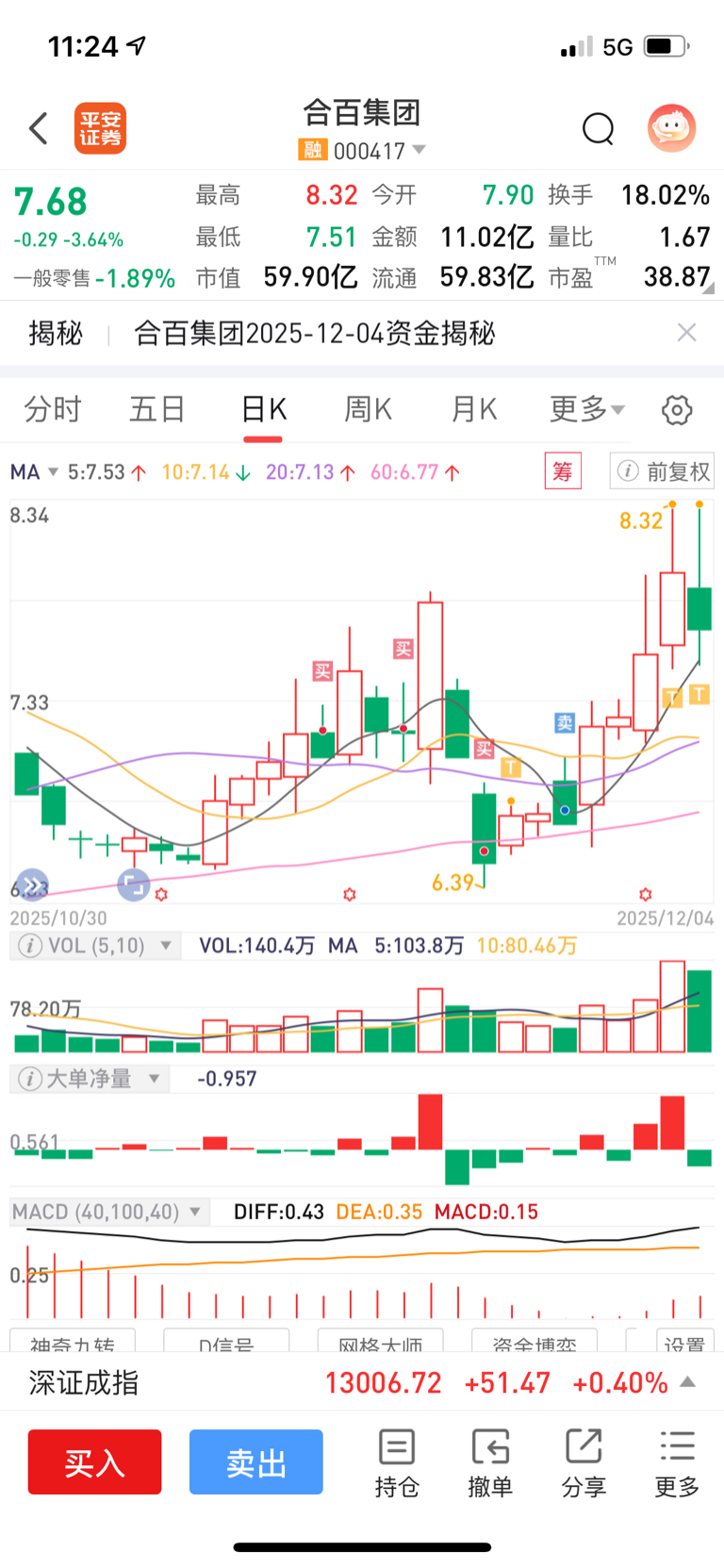 $合百集团(SZ000417)$ 看你怎样操作,心态重要