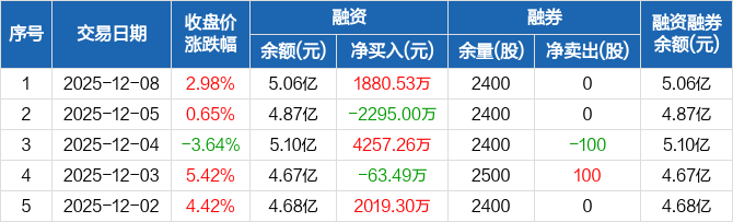 合百集团:融资净买入1880.53万元,融资余额5.06亿元(12-08)