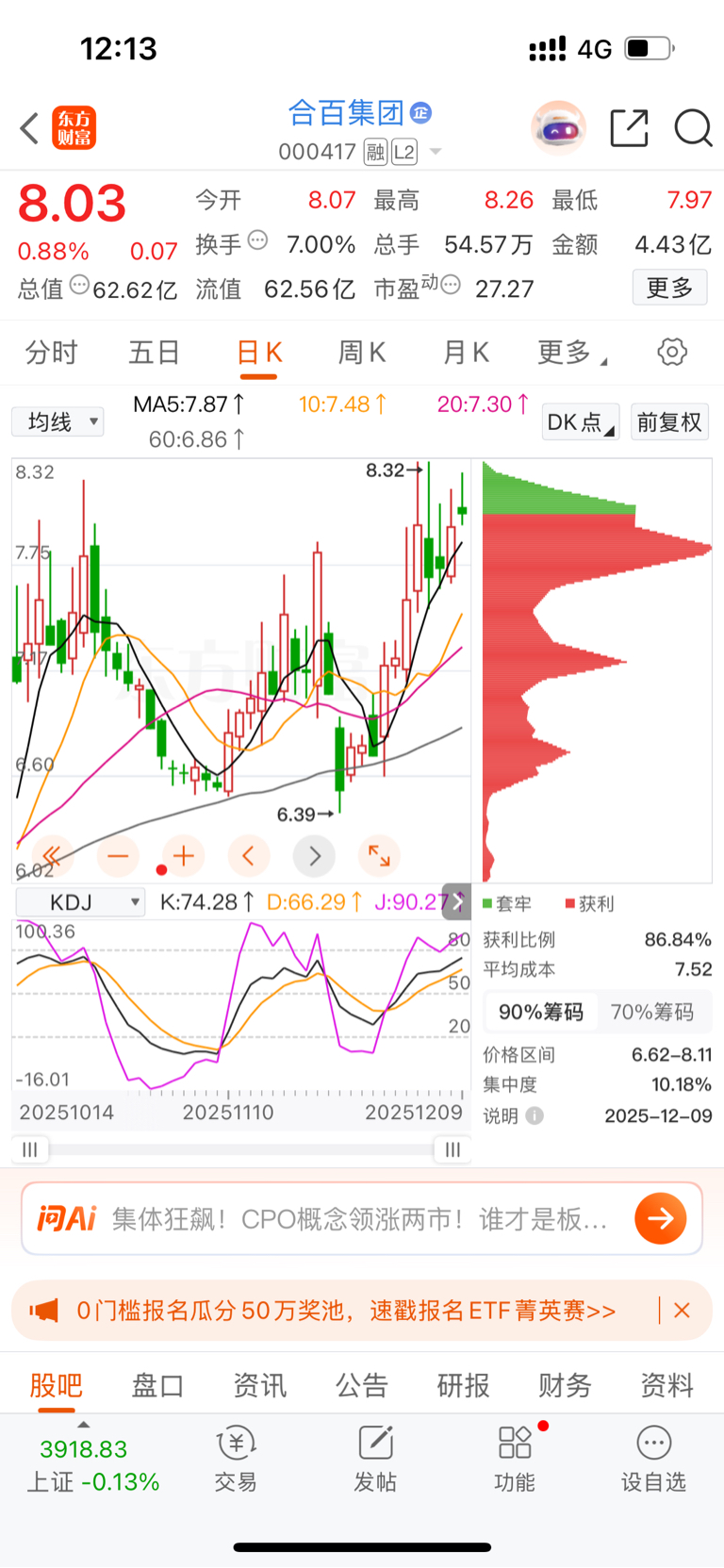 $合百集团(SZ000417)$ 缺口那么大,主力真狠,