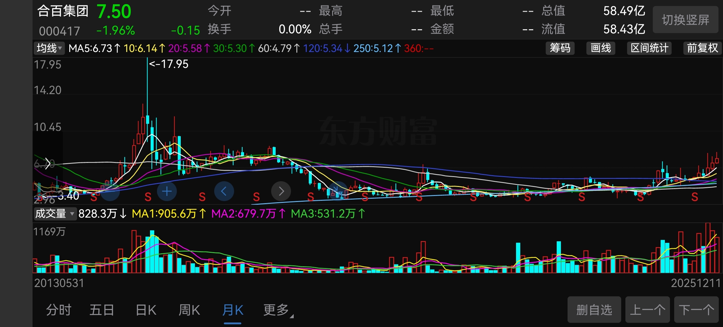 $合百集团(SZ000417)$ 太明细的月线走势了,终有回报