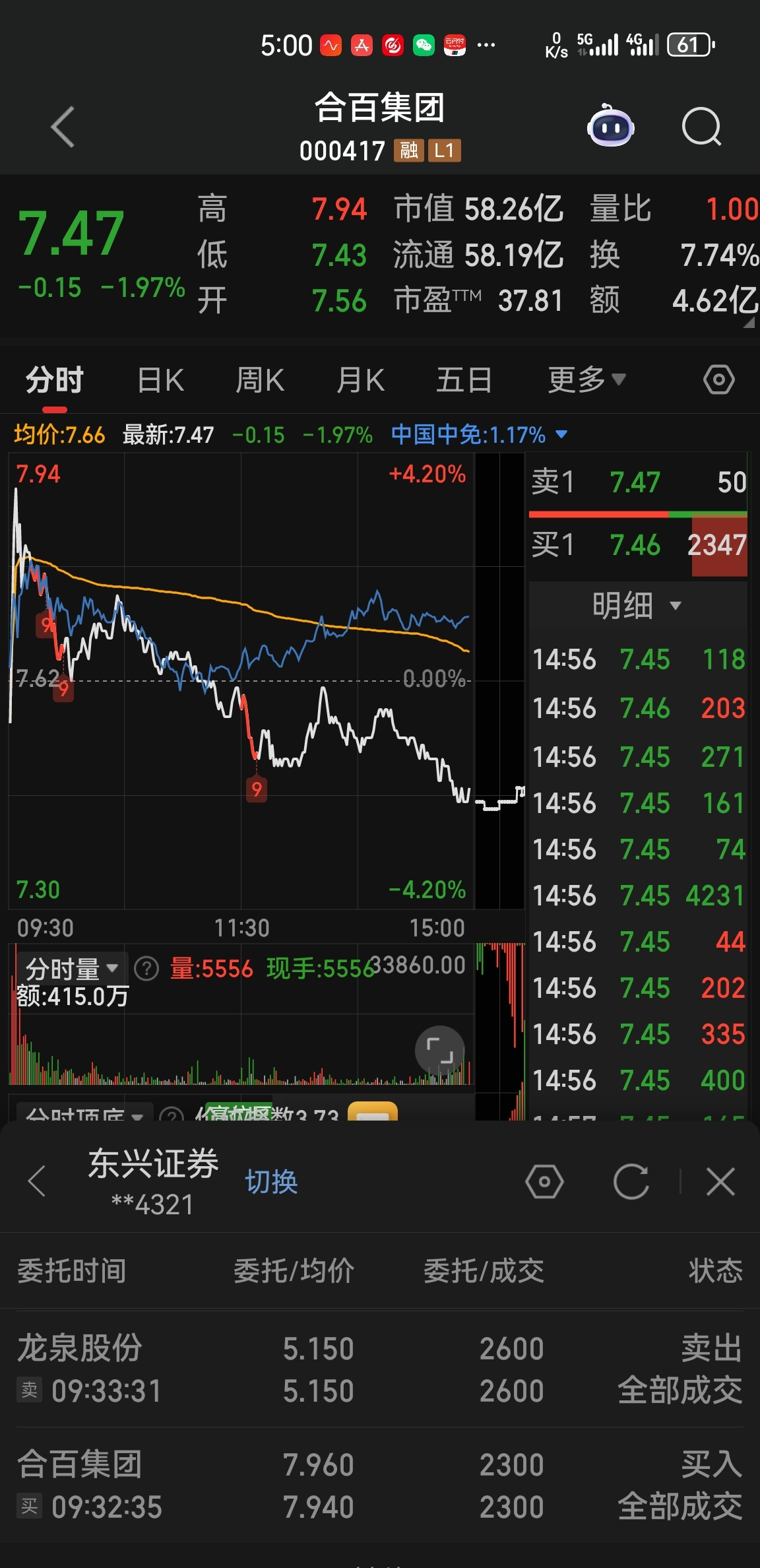 $合百集团(SZ000417)$ 最高点买了,7.80以上加了四次 加成了满仓 啊。