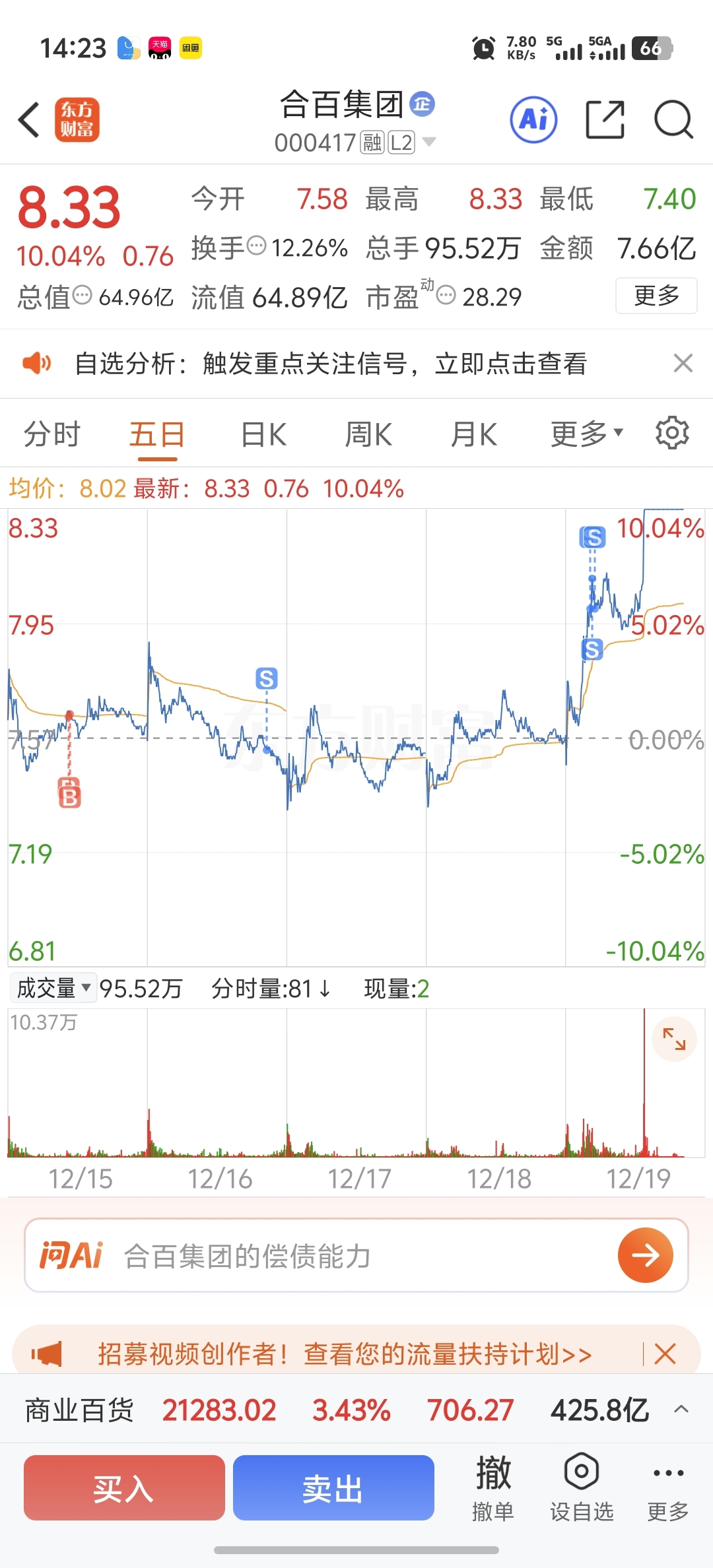 $合百集团(SZ000417)$ 格局了几天,有点弱,今天走了,板上的兄弟继续发财