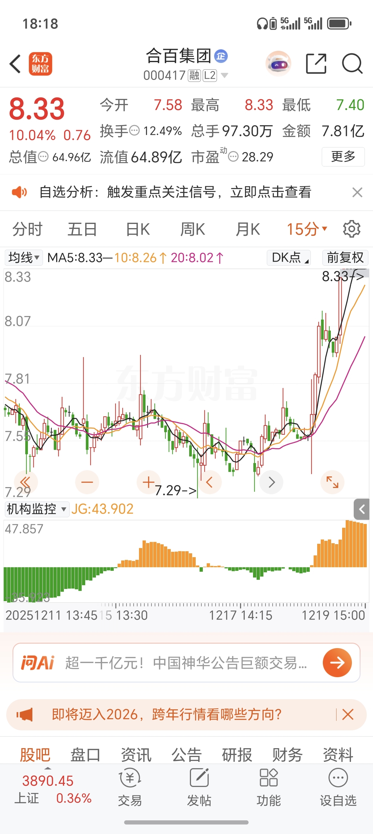 $合百集团(SZ000417)$ 机G净买入!怕毛线哦!