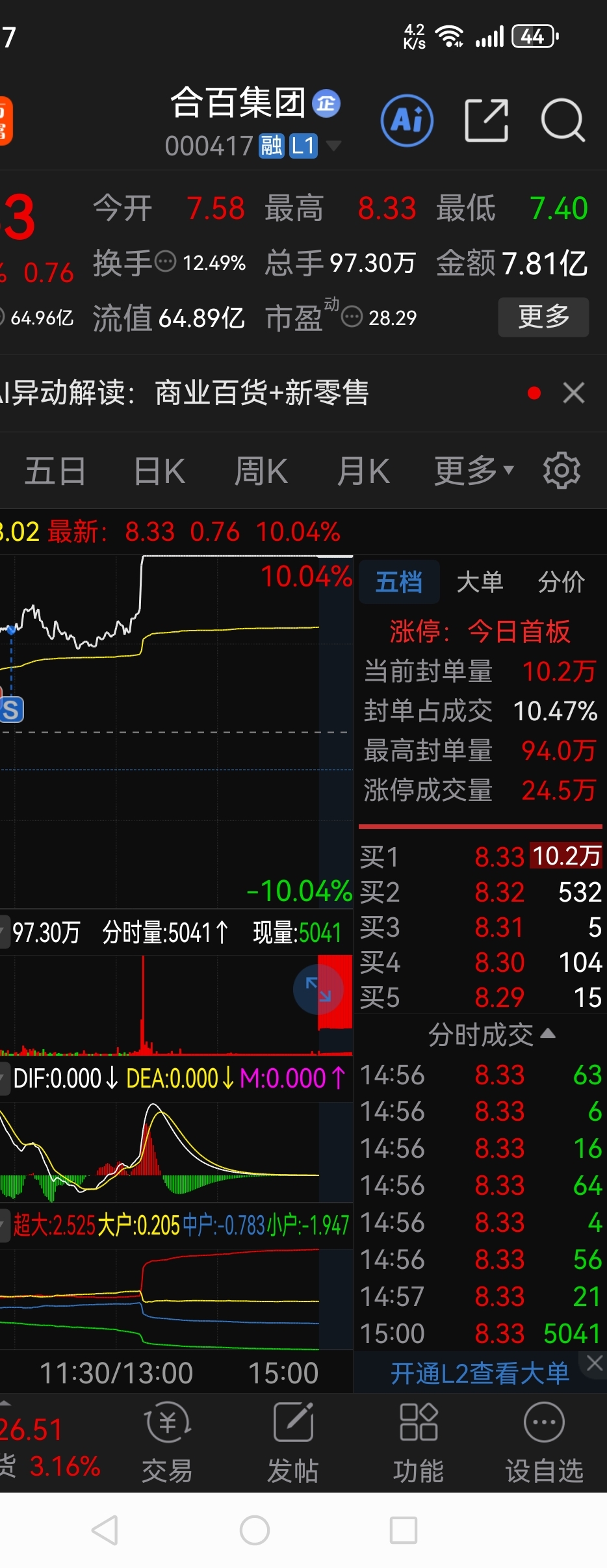 $合百集团(SZ000417)$ 周五割肉卖的周一要不要再买回来好纠结