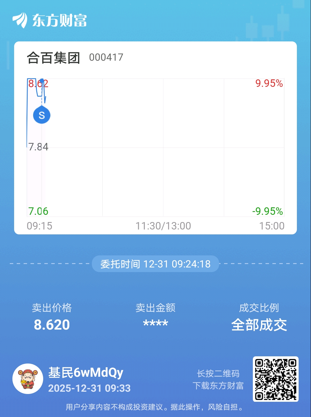 温馨提示: 1.根据《证券法》规定,禁止编造、传播虚假信息或者误导性信息,扰乱证券市场;2.用户在本社区发表的所有资料、言论等仅代表个人观点,与本网站立场无关,不对您构成任何投资建议。用户应基于自己的独立判断,自行决定证券投资并承担相应风险。《东方财富社区管理规定》