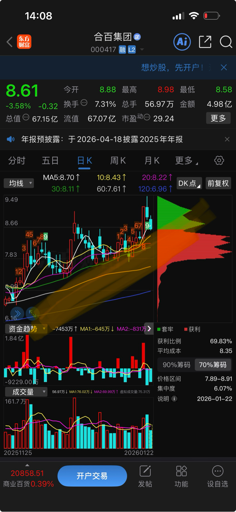$合百集团(SZ000417)$ 低点在不断的抬高,底部筹码纹丝不动,要大涨一波的样子了!加油!
