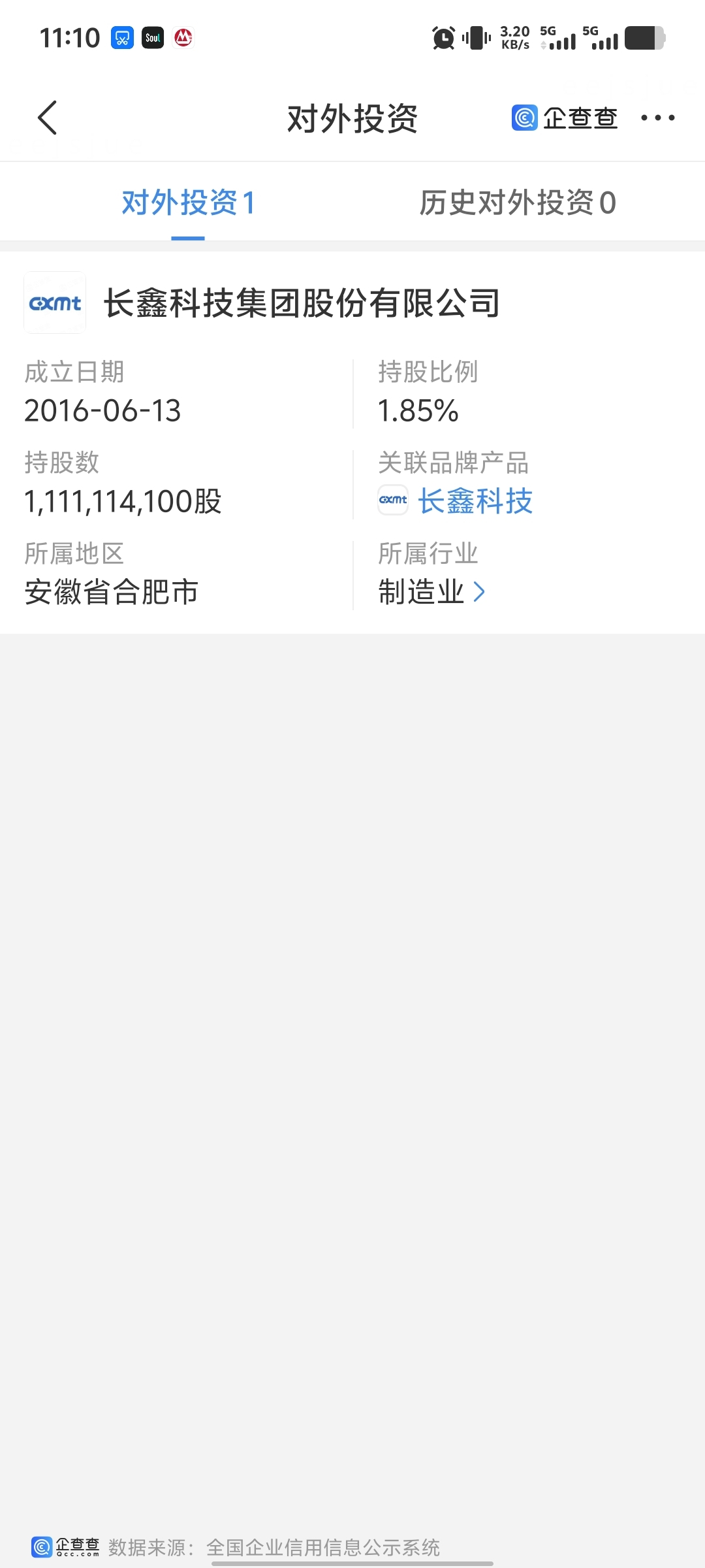 $合百集团(SZ000417)$ 合百集团持有合肥市国联资本股权投资基金合伙企业(有限合伙)的27.86%股权,国联资本又持有合肥产投壹号股权投资合伙企业(有限合伙)15.51%的股权。产投一号又直接持有长鑫存储1.85%的股权。