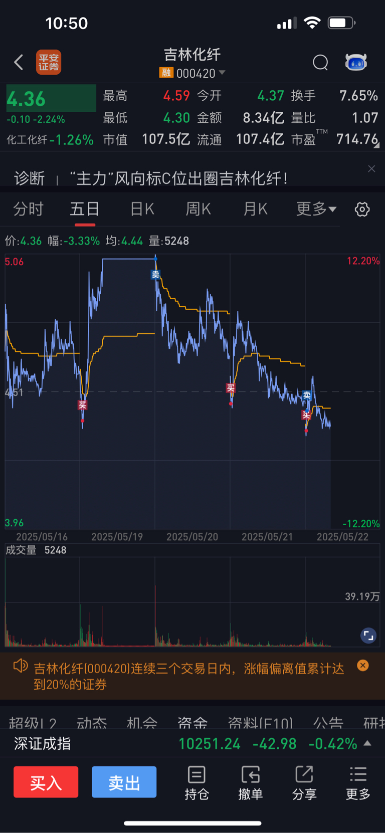 $吉林化纤(SZ000420)$ 简单做下日内T我内心还是希望能下4的