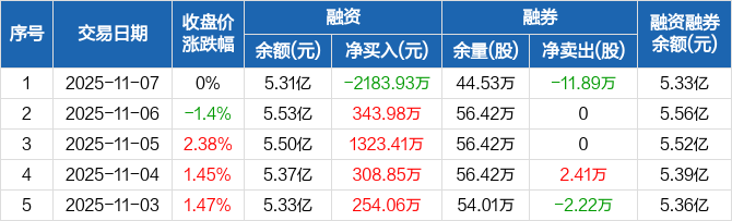 吉林化纤:融资净偿还2183.93万元,融资余额5.31亿元(11-07)