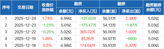 吉林化纤:融资净偿还131.03万元,融资余额4.99亿元(12-24)