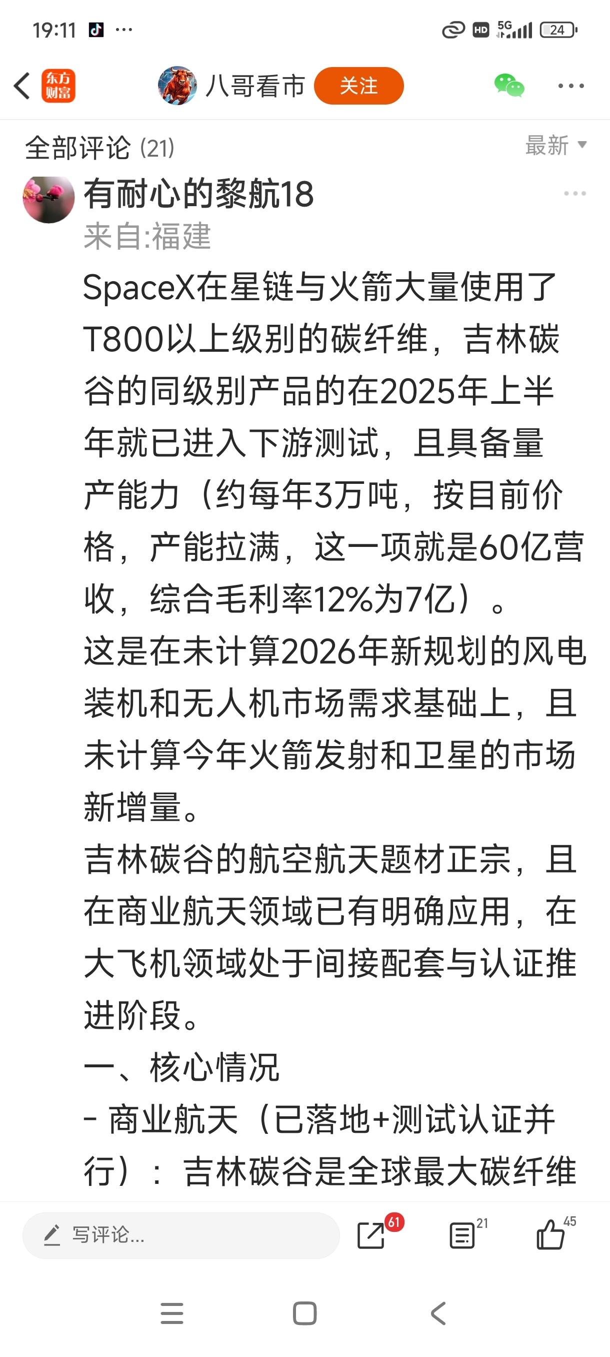 吉林化纤应用在spaCeX上的T000碳纤维,吉化明天一字版