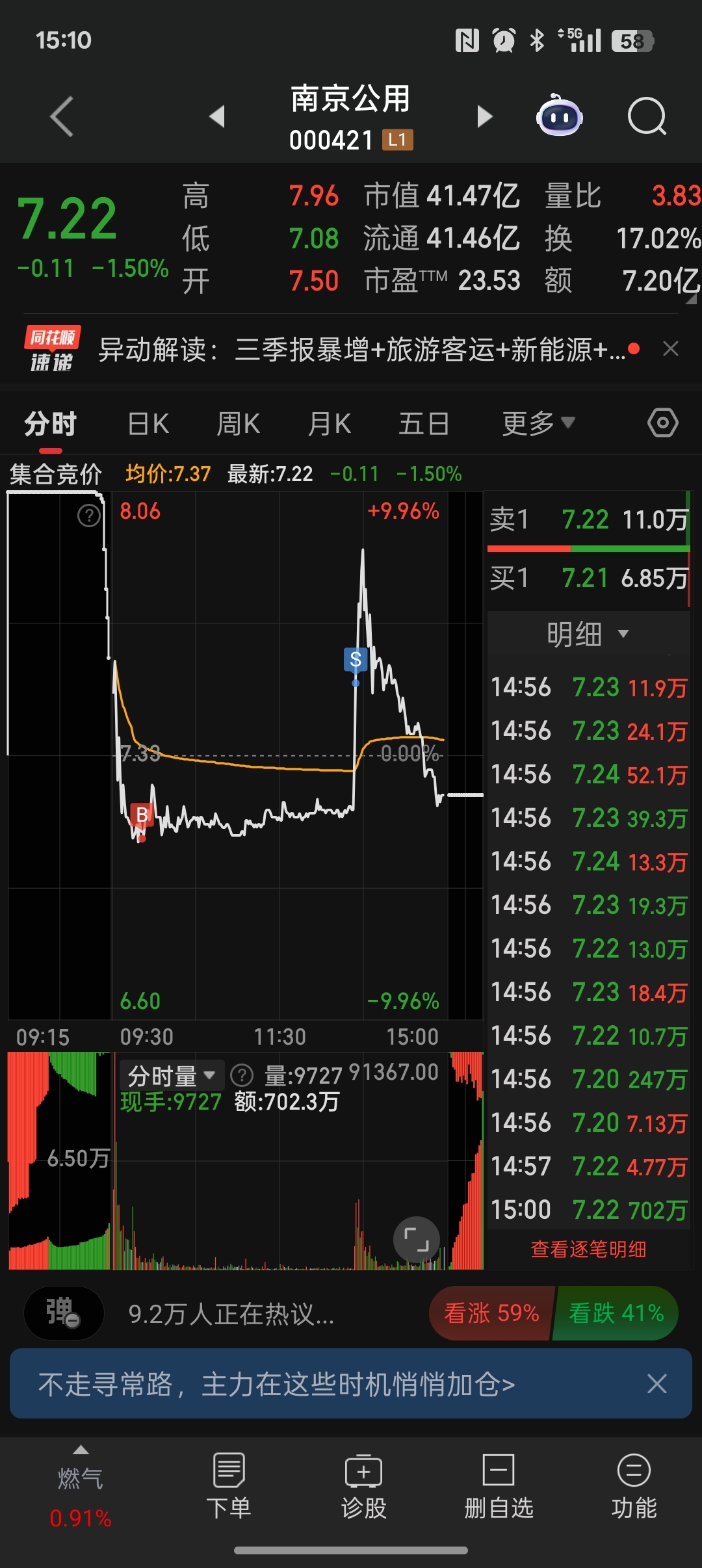$南京公用(SZ000421)$ 盘中富贵