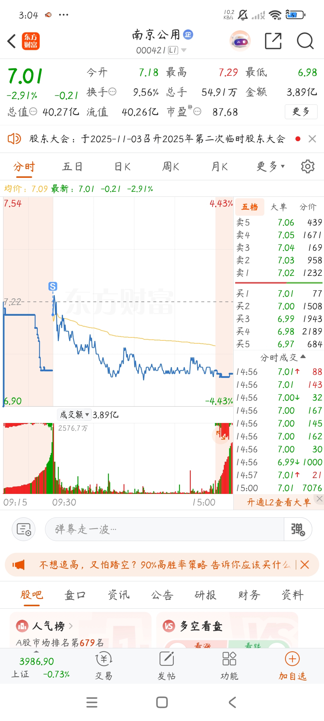 $南京公用(SZ000421)$ 集合竞价都预示结局了,你们跑了吗