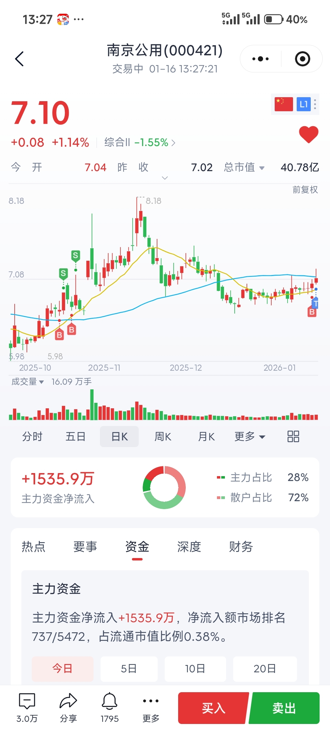 $南京公用(SZ000421)$ 你磨你的我做我的