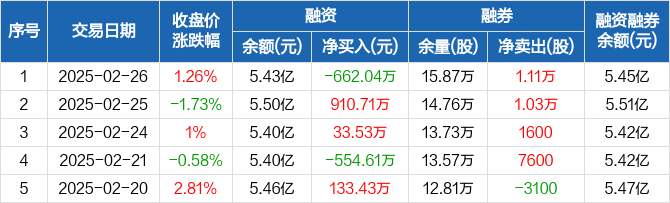 湖北宜化:融资净偿还662.04万元,融资余额5.43亿元(02-26)