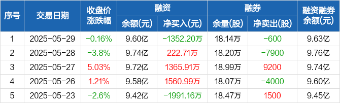 湖北宜化:融资净偿还1352.2万元,融资余额9.6亿元(05-29)