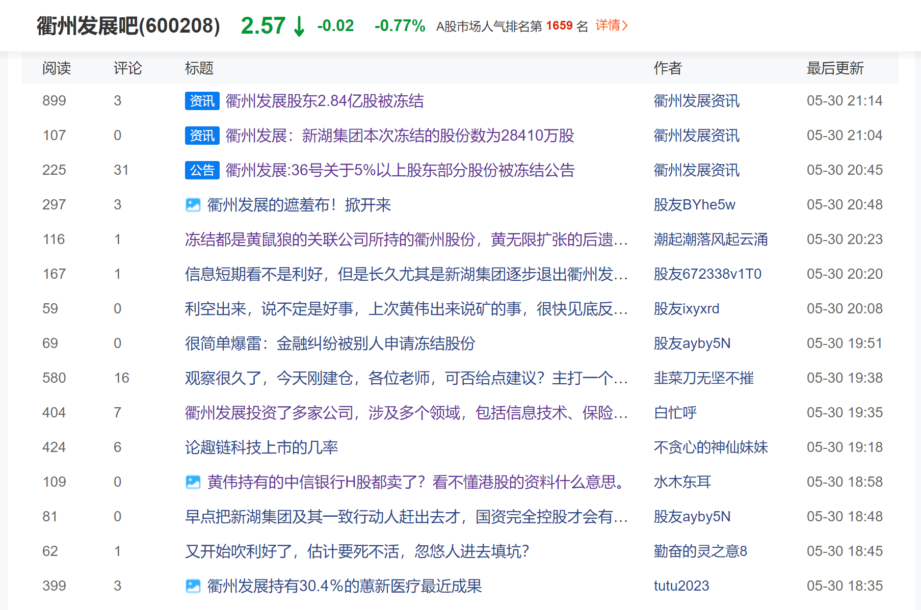 衢州发展公告:公司股东新湖集团2.84亿股股权被法院冻结3年!!!