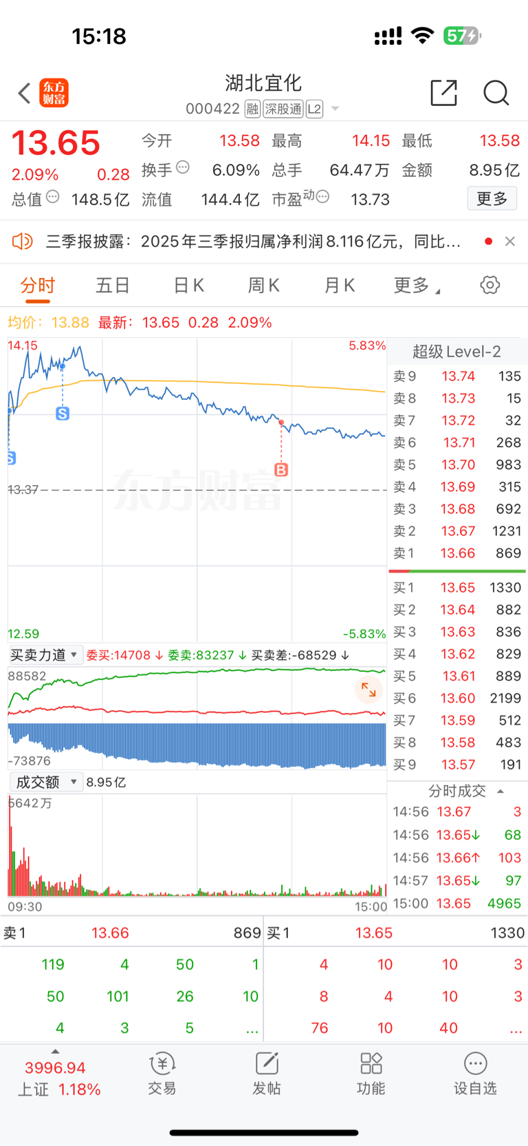 $湖北宜化(SZ000422)$ 开盘13.76卖了半仓,19.01买入特变。14块又清了,13.7接回,又T了三毛,完美