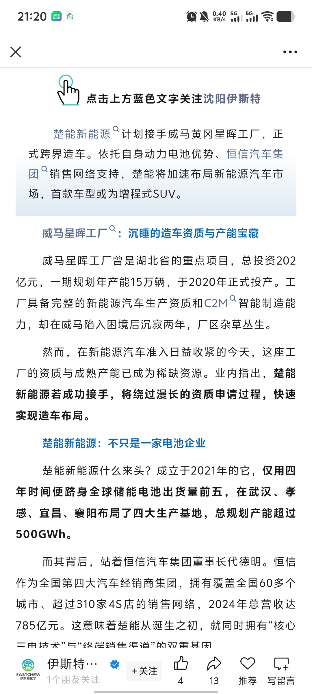 $湖北宜化(SZ000422)$ 最近涨和这个收购威马造车有关吗