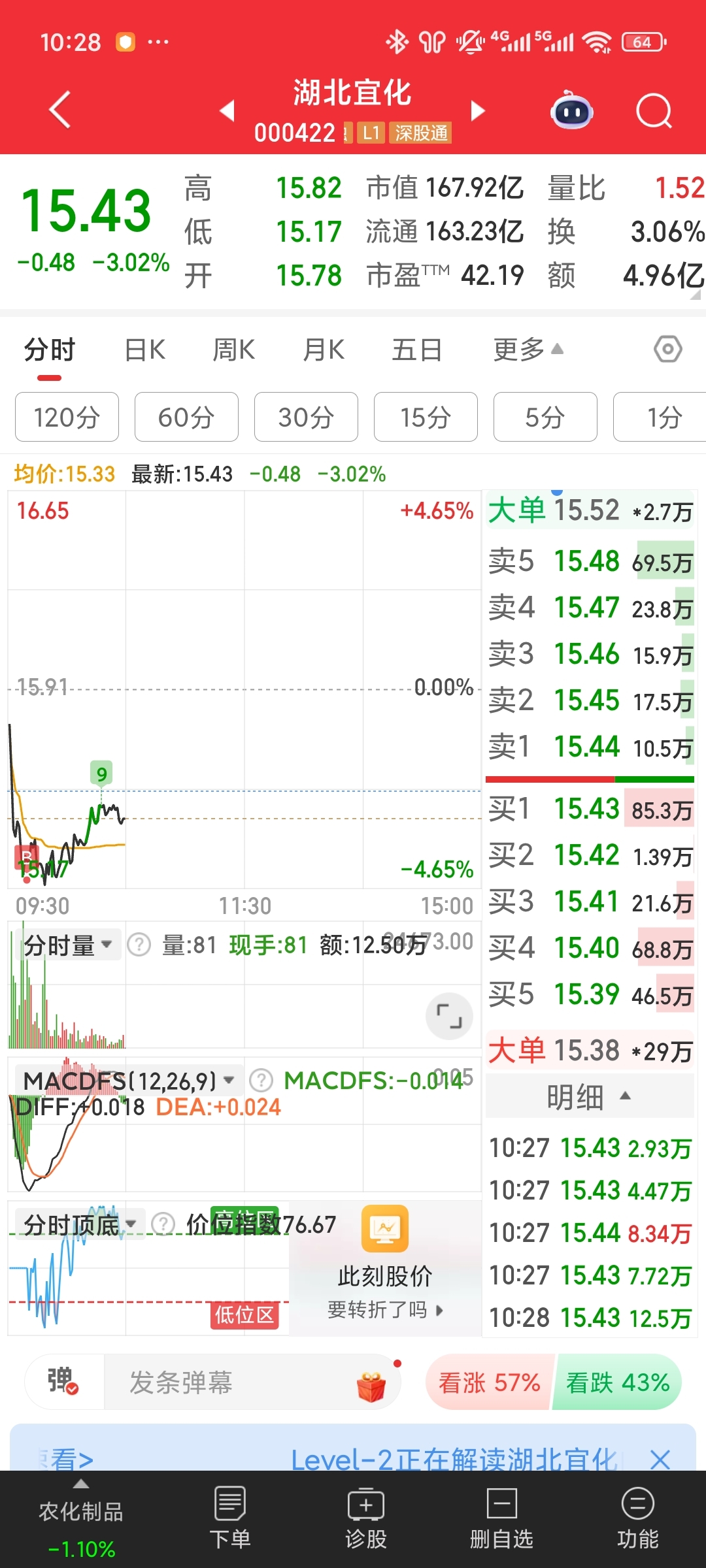 $湖北宜化(SZ000422)$ 昨天卖的今天买回来,尾盘看看情况要不要卖。
