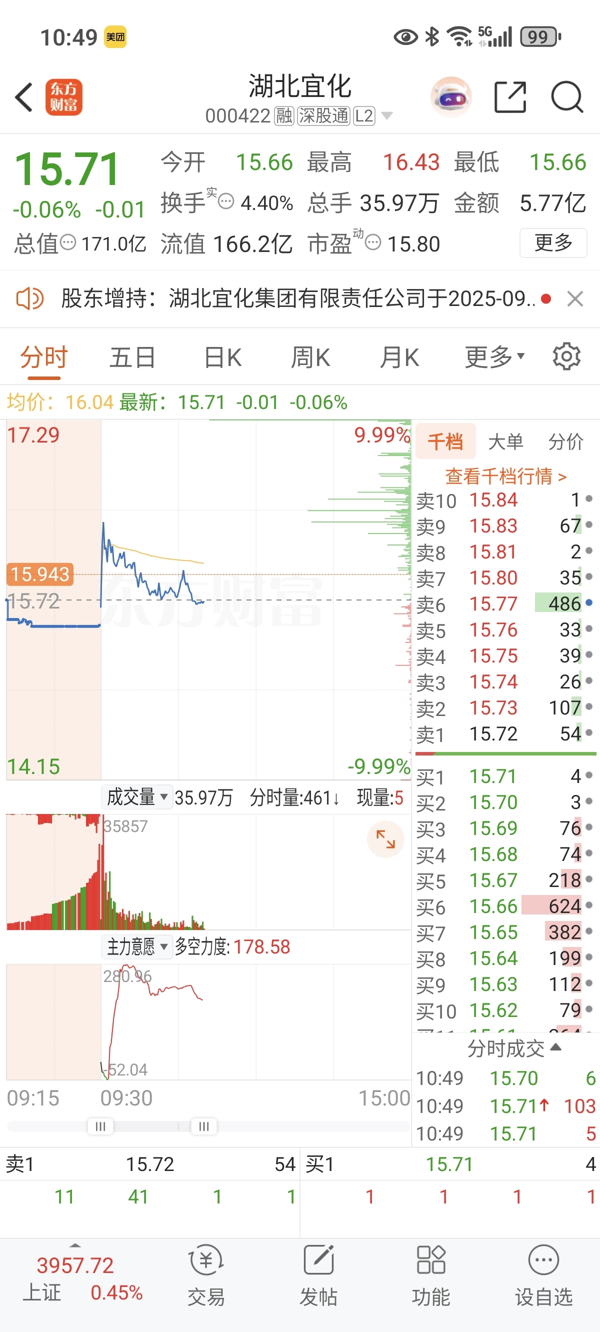 $湖北宜化(SZ000422)$ 4个点没跑,格局的一分钱都没了