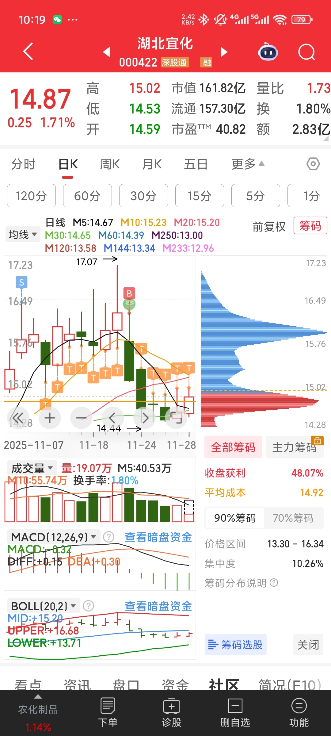 $湖北宜化(SZ000422)$ 这票大涨大跌后,面对支撑位和压力位,是最容易做t的,底仓不动,也不存在卖飞的情况。