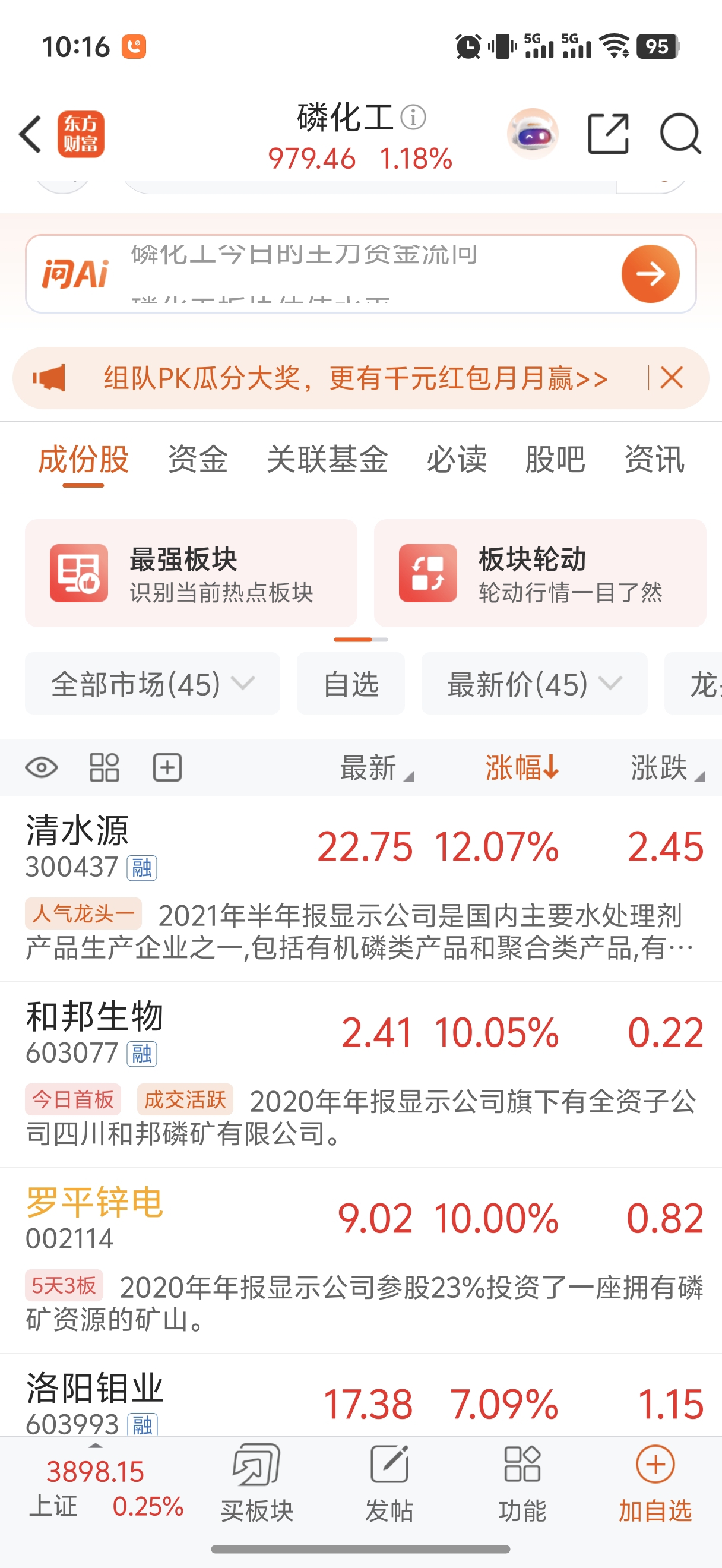 $湖北宜化(SZ000422)$ 看看磷化工都涨多少了,看看清水源都要20CM涨停了,你们呢,下来都没有点像样反弹??????磷化工巨头?
