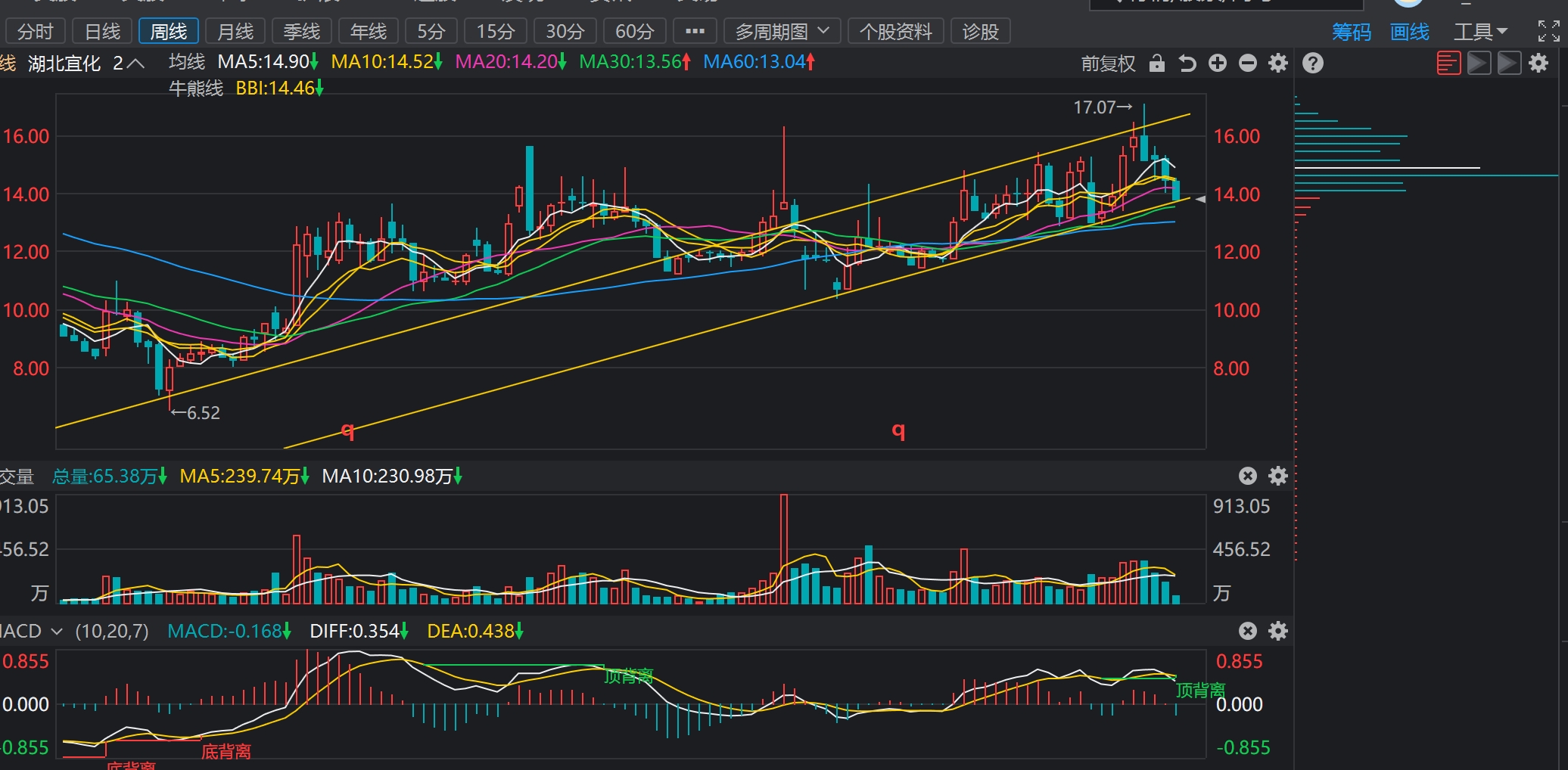 $湖北宜化(SZ000422)$ 看周线图的话,这个位置应该坚定做多而不是做空。