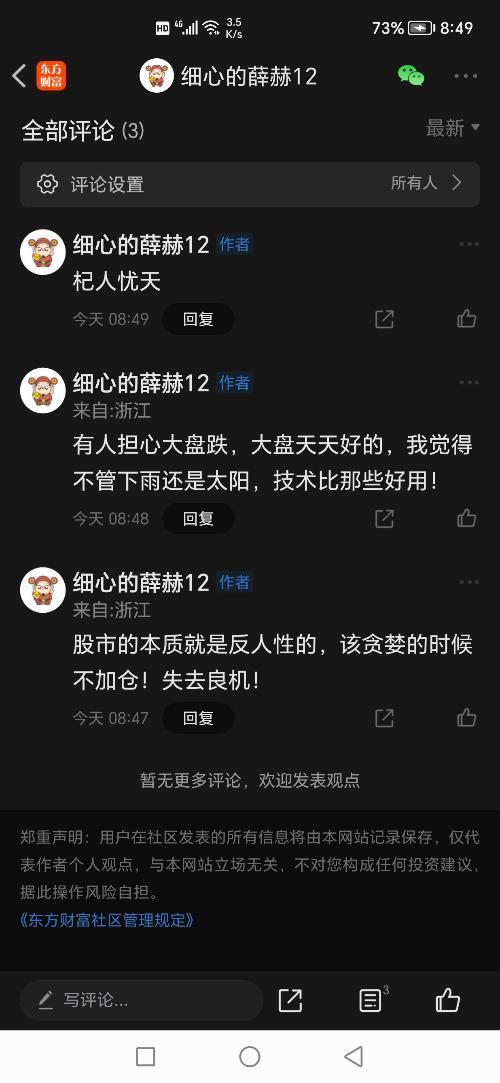 温馨提示: 1.根据《证券法》规定,禁止编造、传播虚假信息或者误导性信息,扰乱证券市场;2.用户在本社区发表的所有资料、言论等仅代表个人观点,与本网站立场无关,不对您构成任何投资建议。用户应基于自己的独立判断,自行决定证券投资并承担相应风险。《东方财富社区管理规定》
