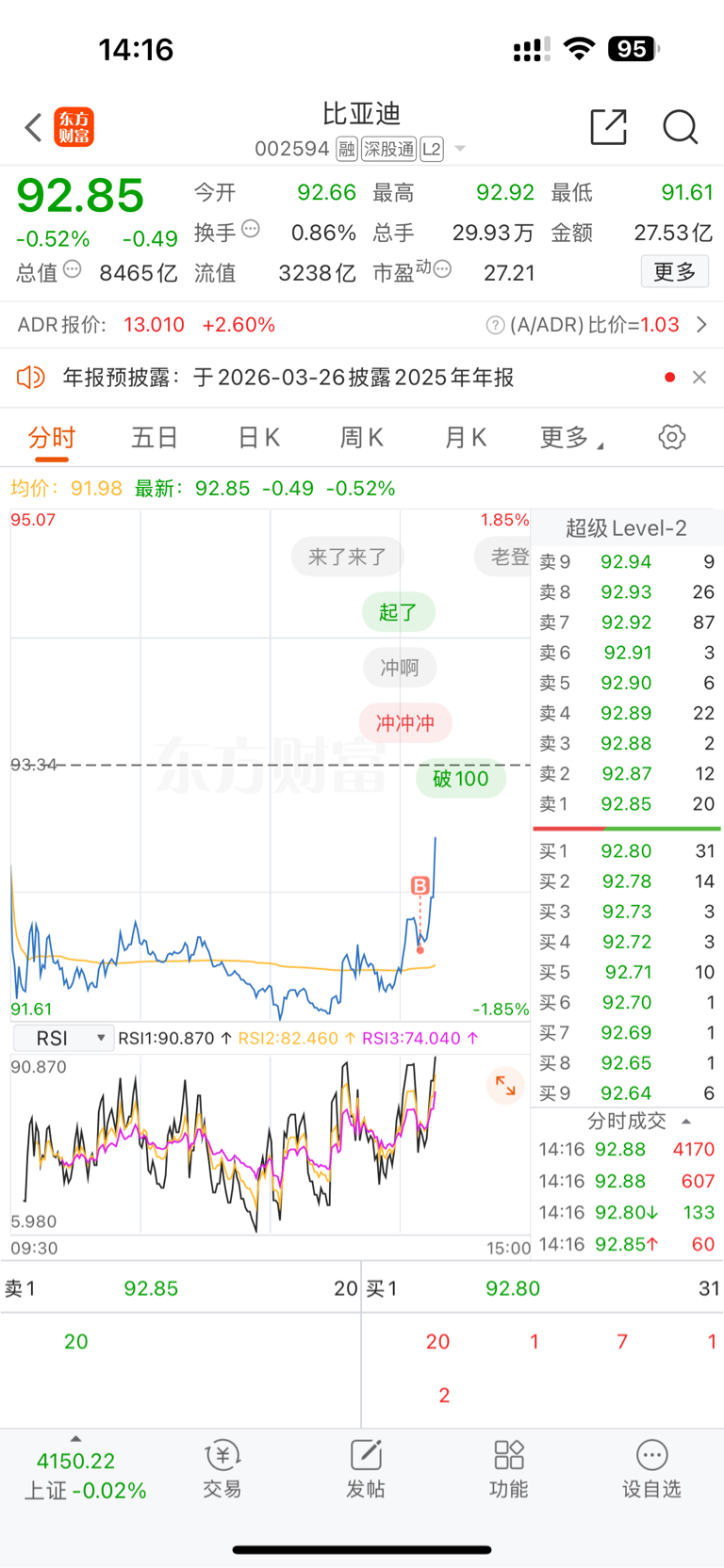 昨天割的宜化,今天买上比亚迪,爽歪歪