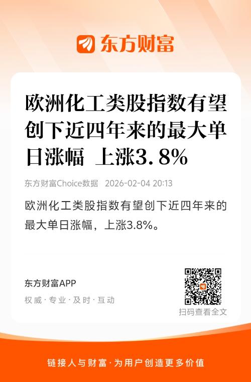 欧洲化工类股指数有望创下近四年来的最大单日涨幅,上涨3.8%。