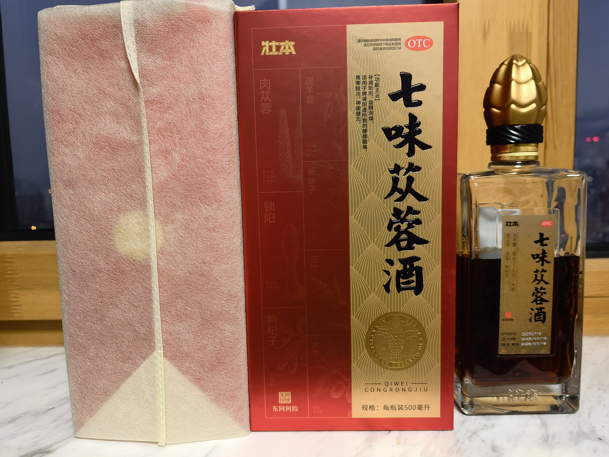 东阿阿胶七味苁蓉酒,好喝,管用。据说市场价398元,我喝的是内部价,美丽。必大卖