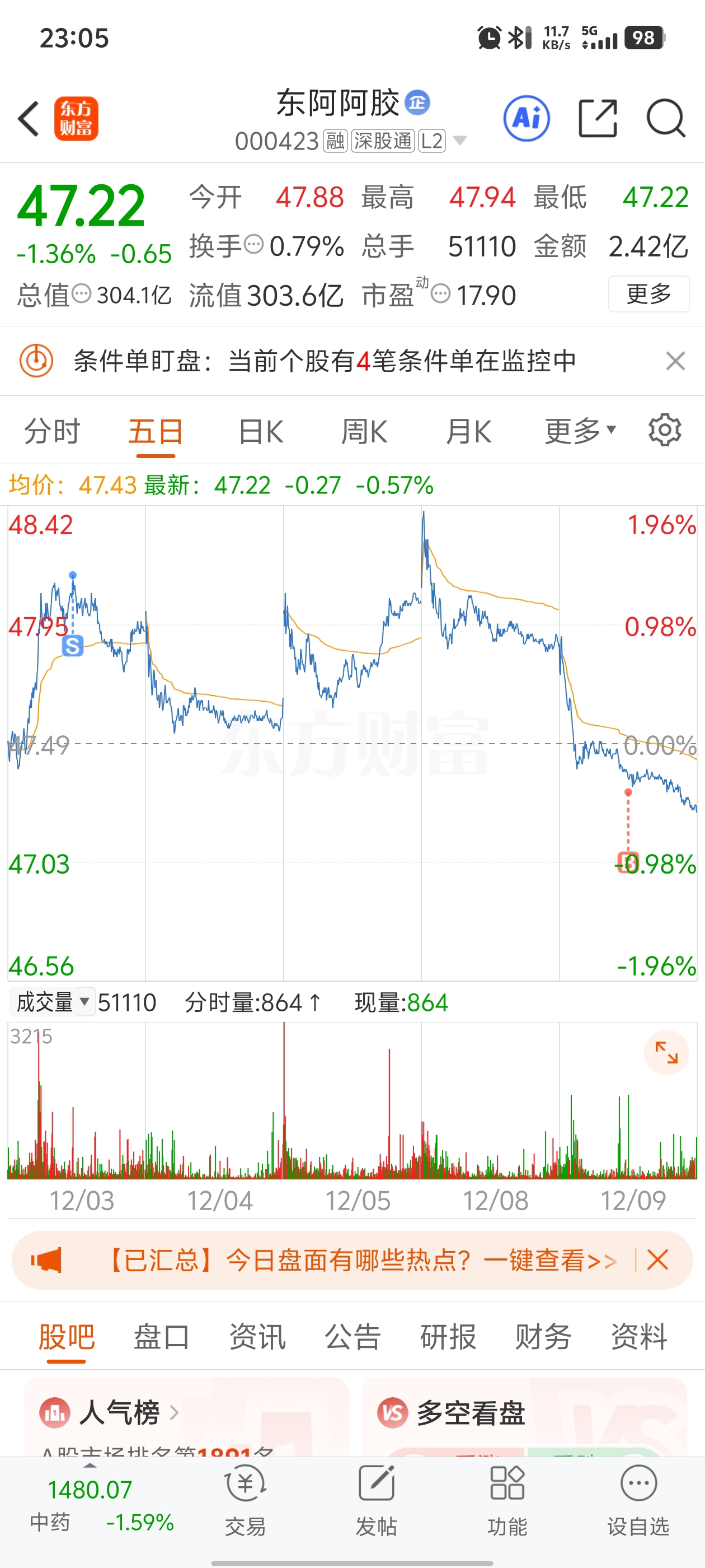 $东阿阿胶(SZ000423)$ 逢低加仓, 持仓成本比啥都重要