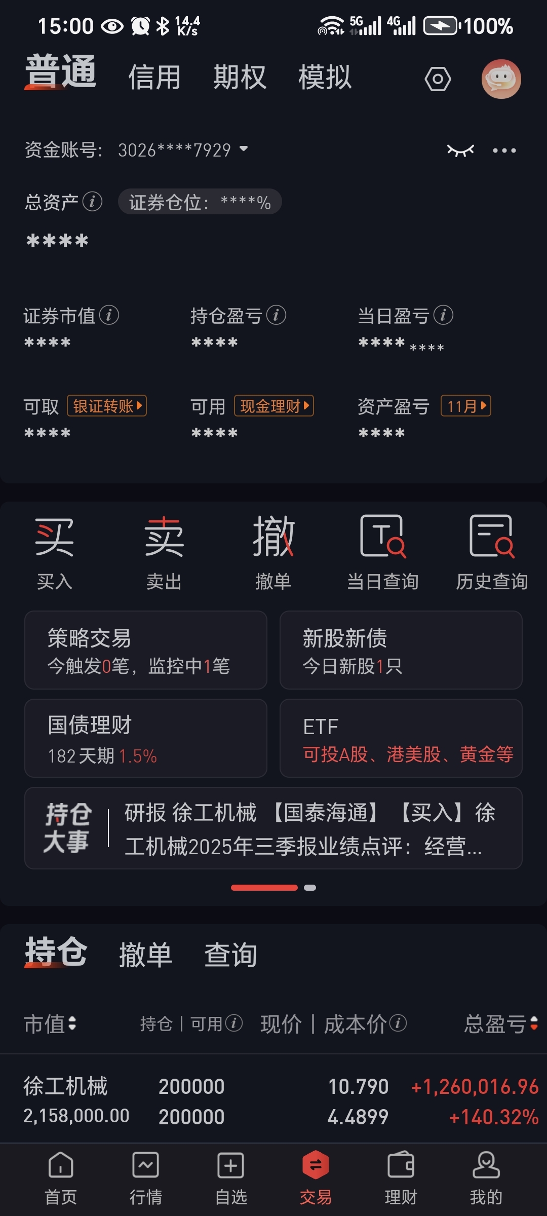 $徐工机械(SZ000425)$ 股市是投资,不是赌博,不必在乎当日的涨跌,像徐工这种质地好的股票,终究会在震荡中上行,当初买了20万股,如果只看每天的走势,有许多个下跌甚至暴跌的日子,心中岂不煎熬难受,但如果把时间轴拉长,就发现获利颇丰,心中早已阳光灿烂,有下图为证。