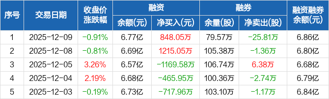 徐工机械:融资净买入848.05万元,融资余额6.77亿元(12-09)