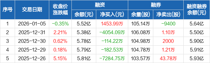 徐工机械:融资净买入1453.99万元,融资余额5.52亿元(01-05)