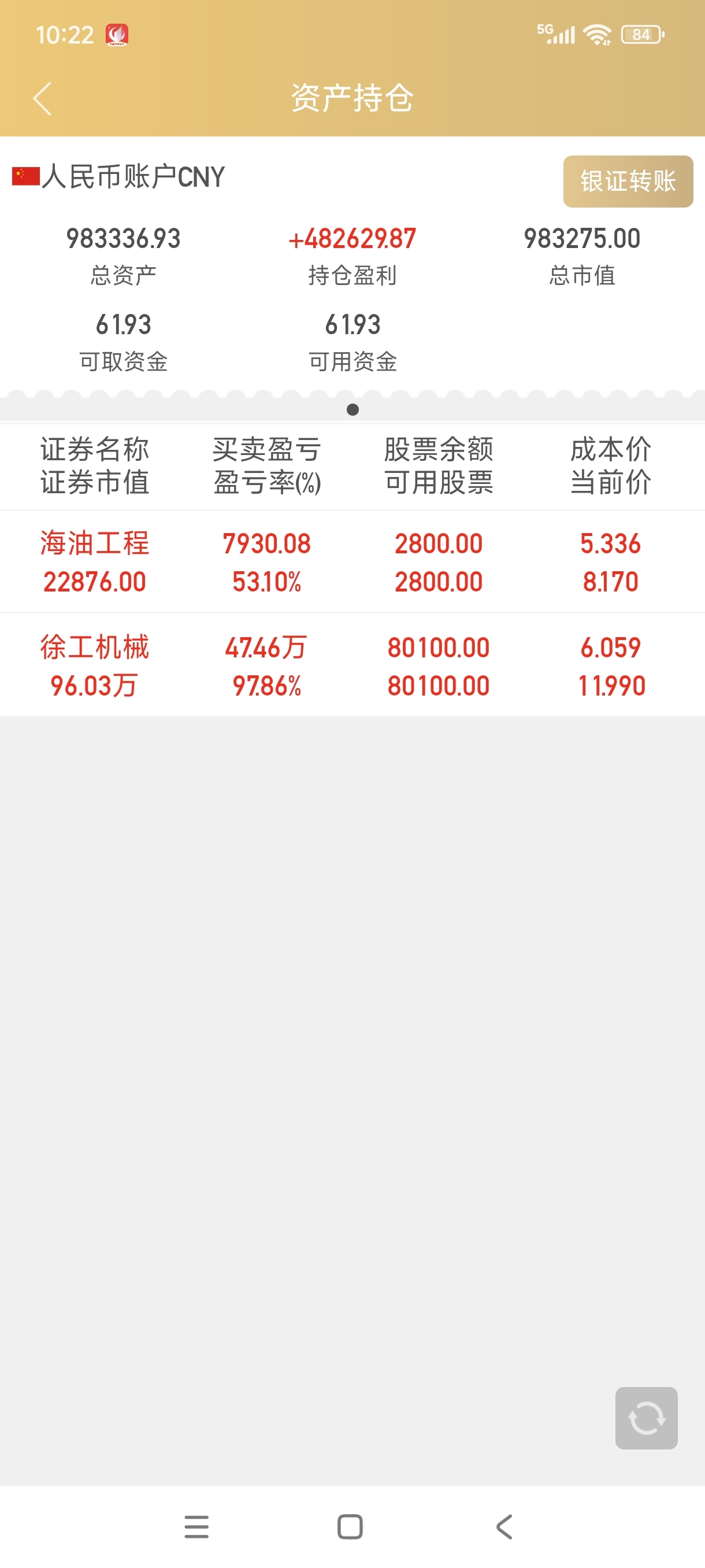 $徐工机械(SZ000425)$ 我这股炒的可还行