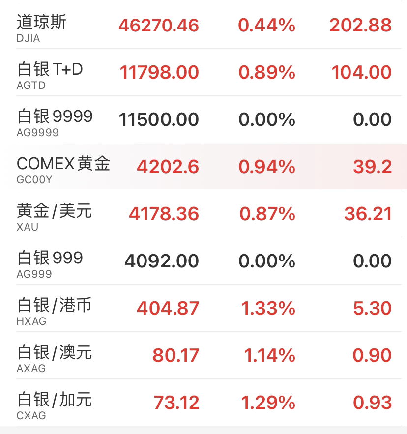 今天国际金银都在涨,兴业怎么今天还下跌了?