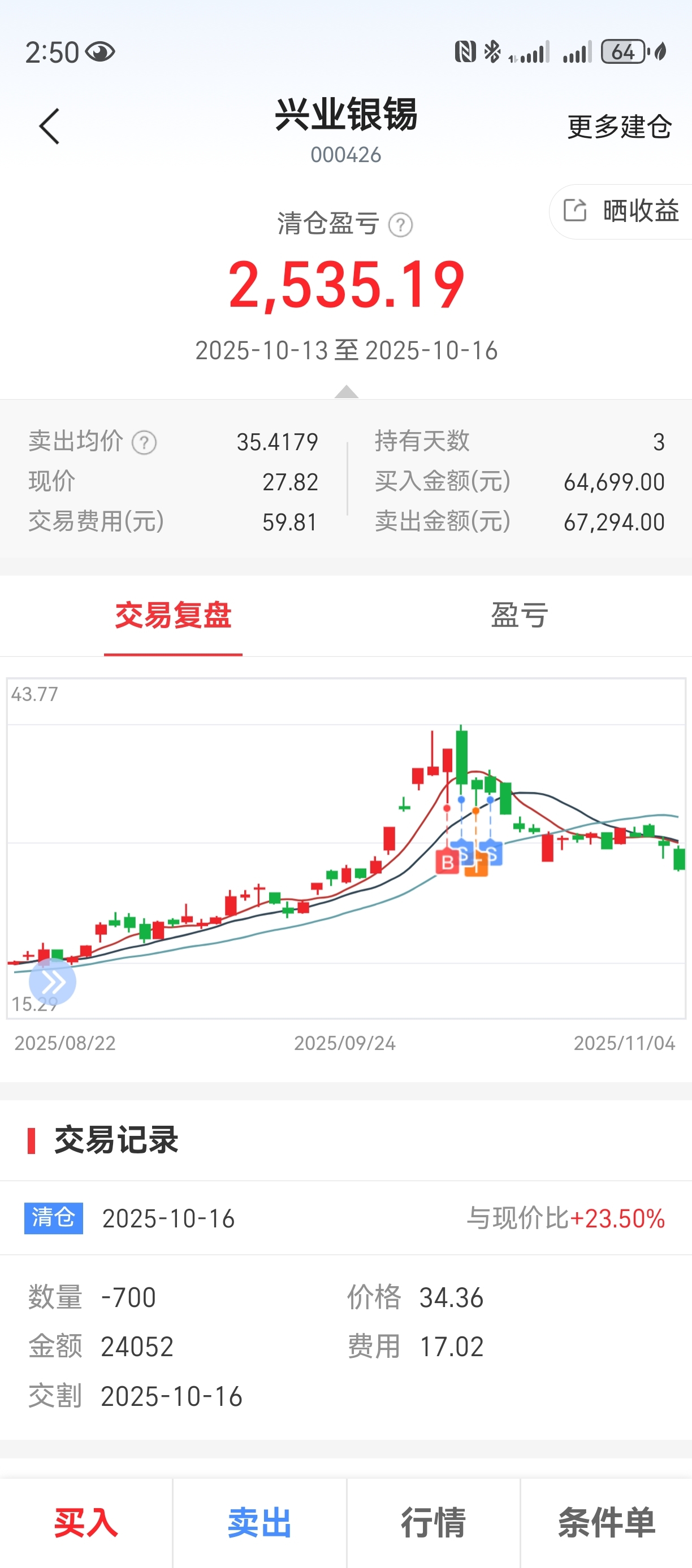 $兴业银锡(SZ000426)$ 回来看看真的是吓死人