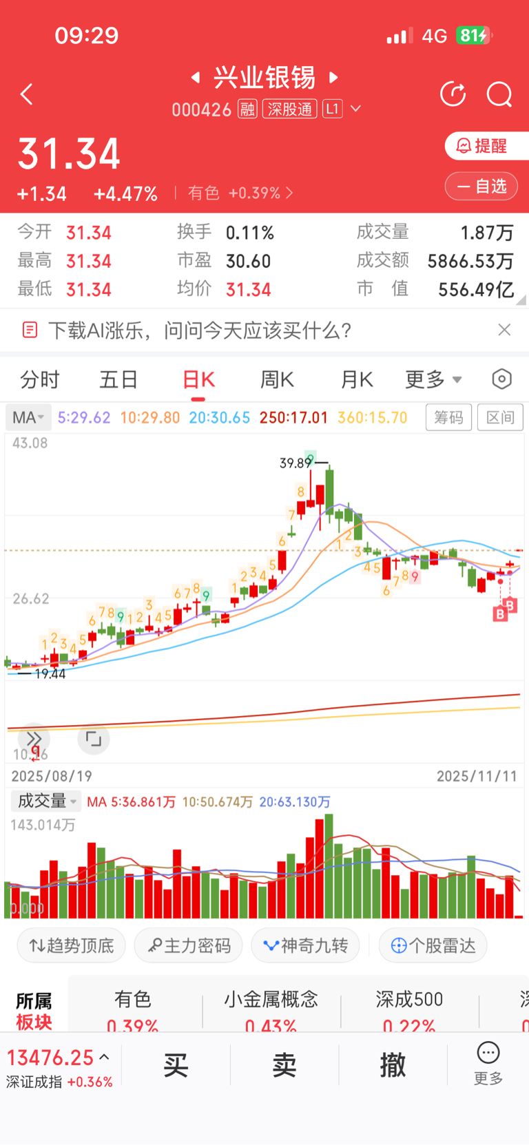 $兴业银锡(SZ000426)$ 动作太慢了,买少了