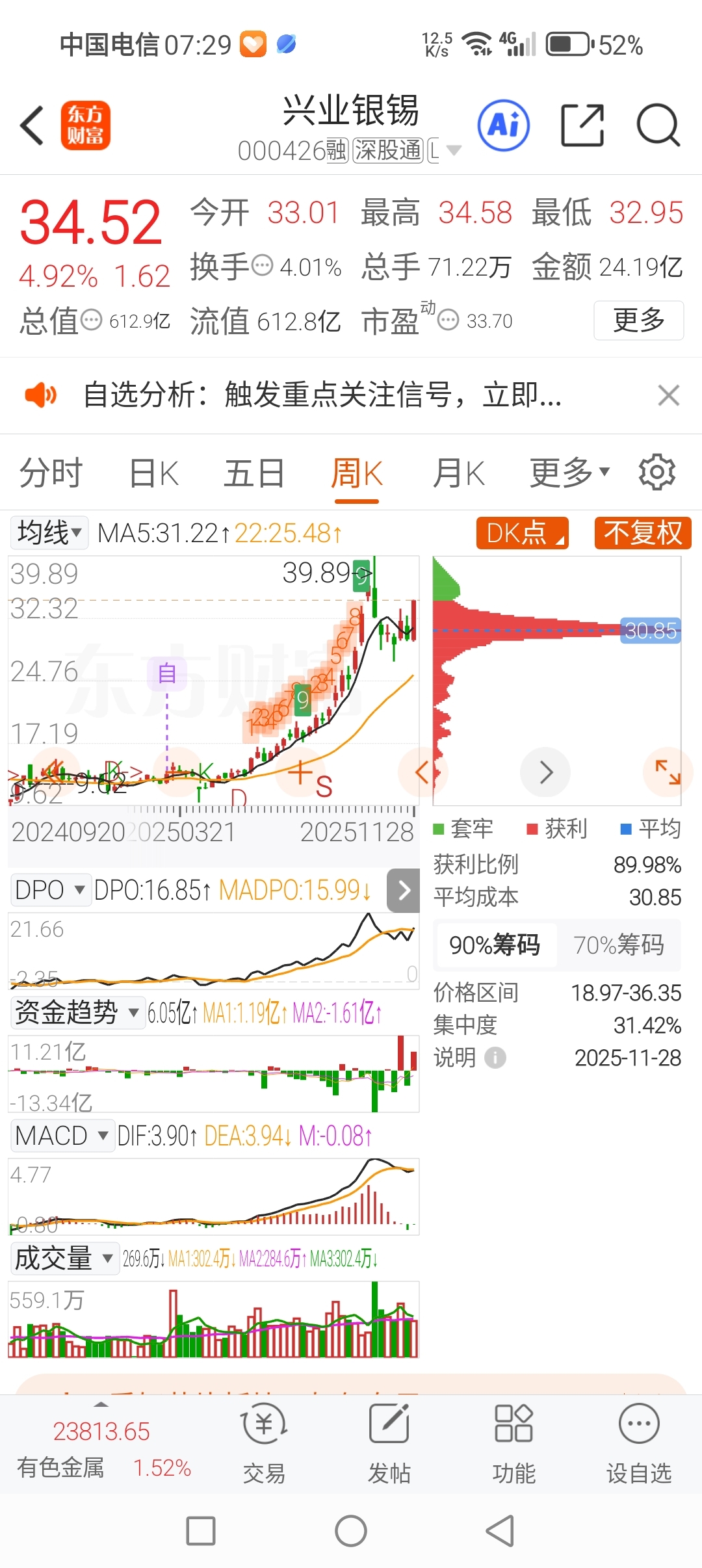 $兴业银锡(SZ000426)$ #炒股日记# 上周上涨15.88%
