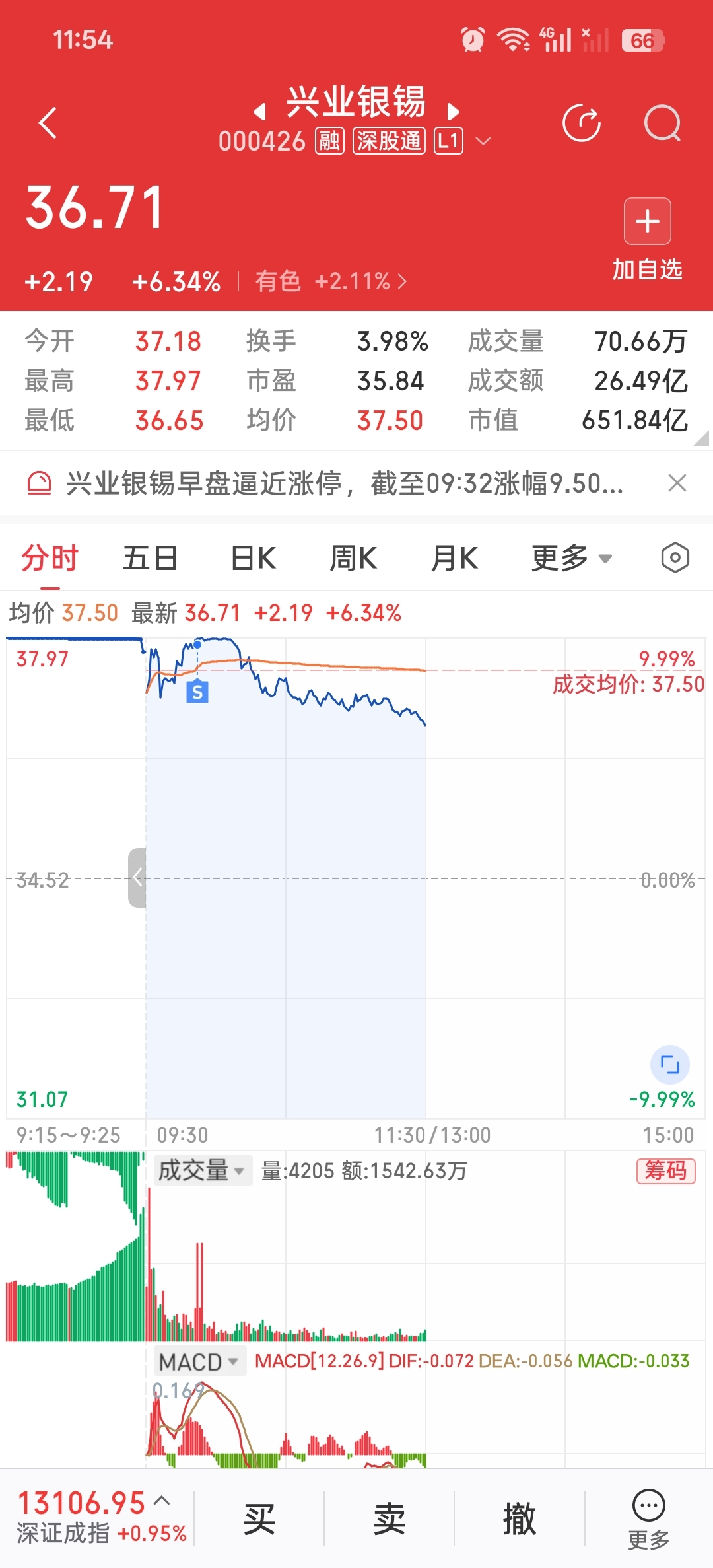 $兴业银锡(SZ000426)$ 高点清仓!知足常乐