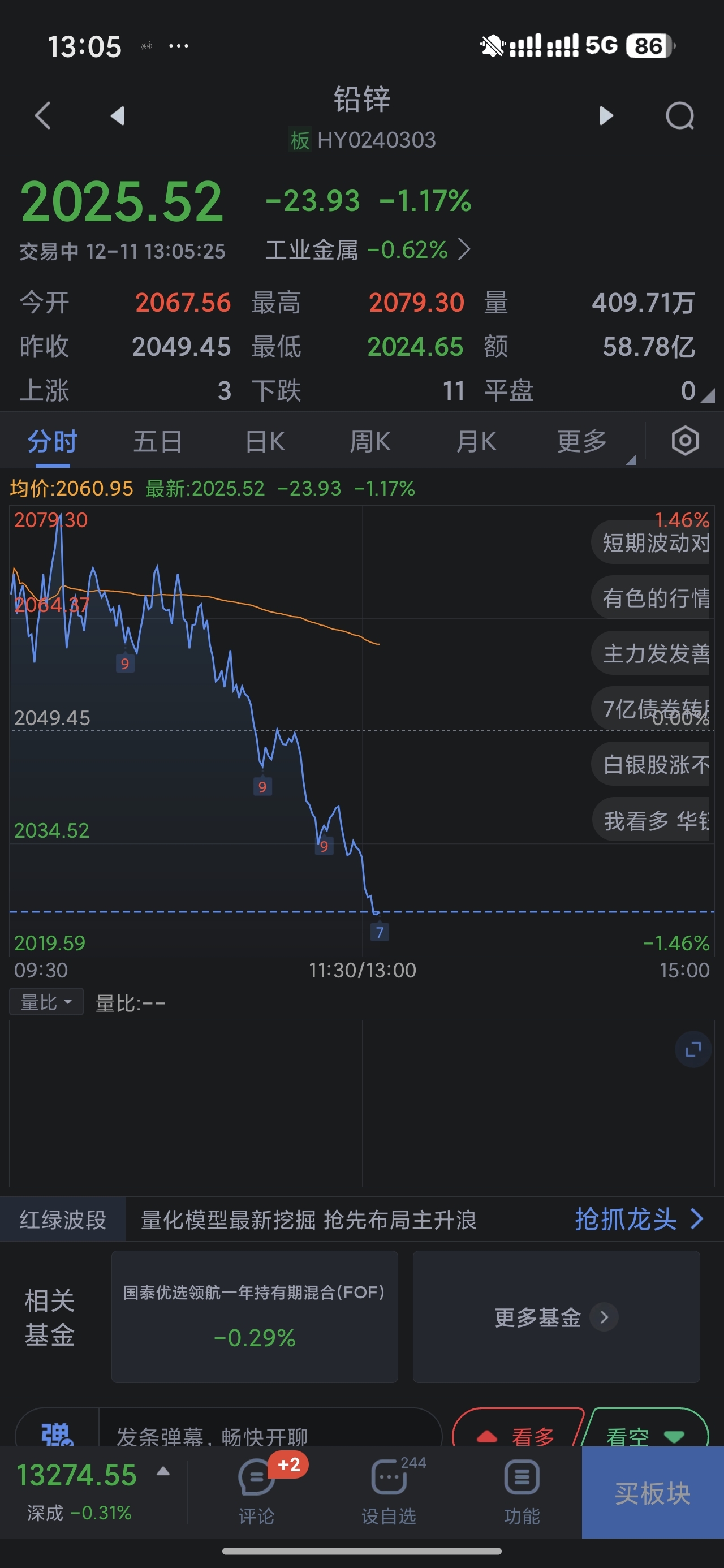 哪里跌就跟谁,其他都天天涨,现在锌铅下跌,跟这个,占比不到百分之十,猛猛跟跌