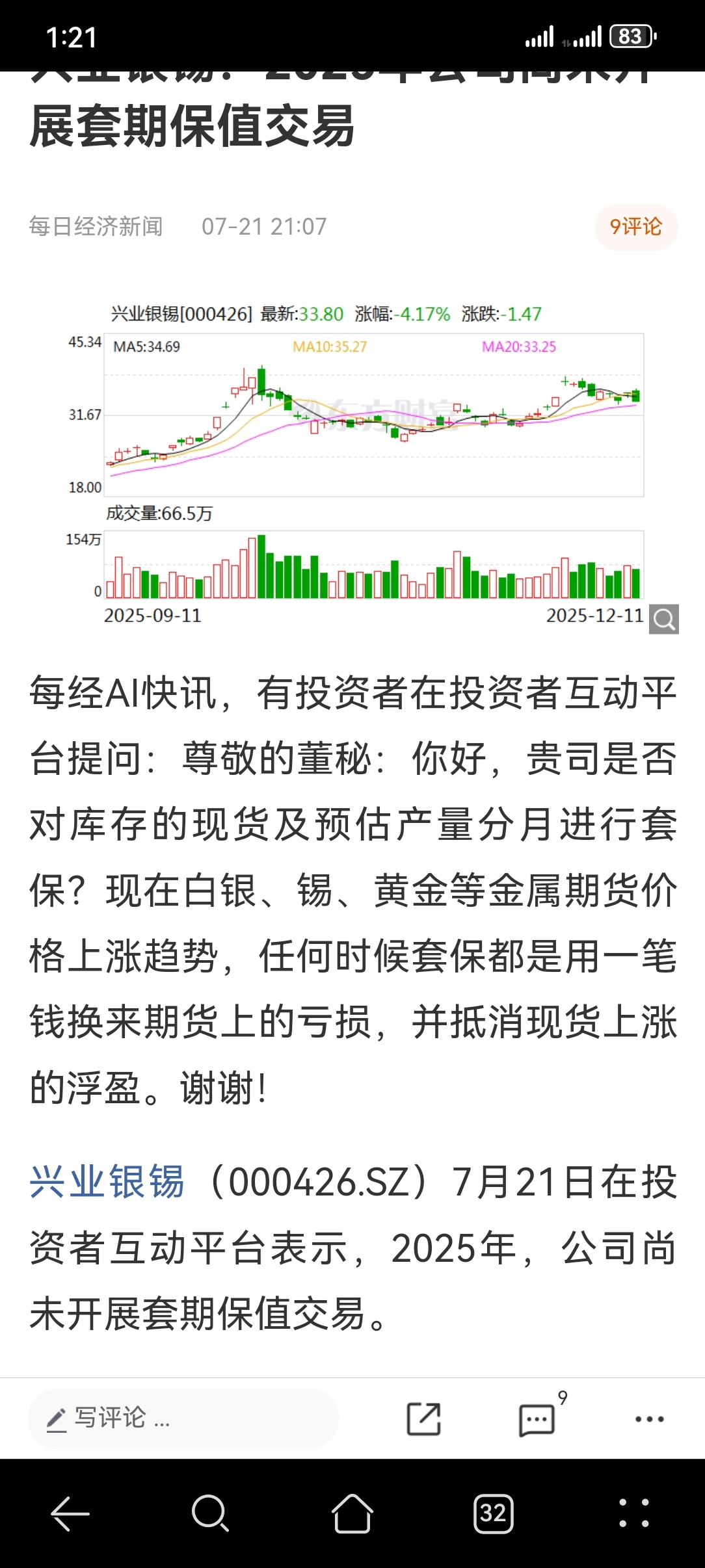 $兴业银锡(SZ000426)$ 七月份显示套保 说不过去了啊
