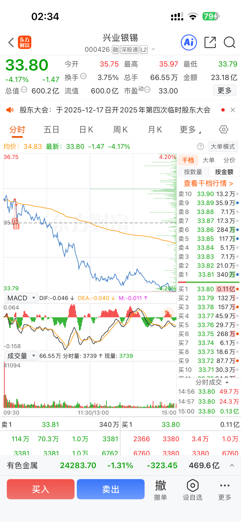 $兴业银锡(SZ000426)$ 大无语,本来想吃个补涨先结果被套住了